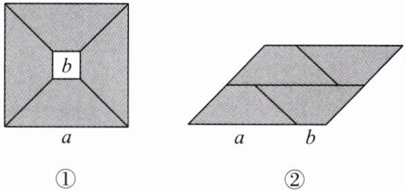 7. 从一个边长为 $a$ 的大正方形纸板正中央挖去一个边长为 $b$ 的小正方形后,将其裁成四个大小和形状完全相同的四边形(如图①),然后拼成一个平行四边形(如图②)。通过计算两个图形中阴影部分的面积,可以验证成立的等式为( )
