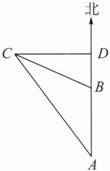 12. 如图,下午 $ 2 $ 时,一艘轮船从 $ A $ 处向正北方向航行,下午 $ 5 $ 时达到 $ B $ 处,继续航行到达 $ D $ 处时发现灯塔 $ C $ 恰好在正西方向,从 $ A $ 处、$ B $ 处望灯塔 $ C $ 的角度分别是 $ \angle A = 30^{\circ} $,$ \angle DBC = 60^{\circ} $。已知轮船的航行速度为 $ 24 \, n mile/h $,求 $ AD $ 的长。