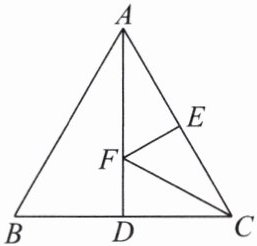 9. 如图,等边三角形 $ ABC $ 的边长为 $ 4 $,$ AD $ 是 $ BC $ 上的中线,$ F $ 是 $ AD $ 上的动点,$ E $ 是 $ AC $ 上一点,若 $ AE = 2 $,当 $ EF + CF $ 取得最小值时,$ \angle ECF $ 的度数为______.