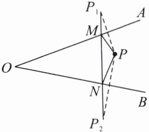 7. 如图,$ P $ 为 $ \angle AOB $ 内一点,分别作点 $ P $ 关于 $ OA $,$ OB $ 的对称点 $ P_1 $,$ P_2 $,连接 $ P_1P_2 $,交 $ OA $ 于点 $ M $,交 $ OB $ 于点 $ N $,若 $ P_1P_2 = 6 $,则 $ \triangle PMN $ 的周长为( )