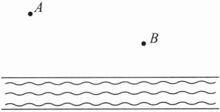 (示意图需画出:直线 l 为河边,A、B 为直线 l 同侧两点,A'为 A 关于 l 的对称点,连接 A'B 交 l 于 P,连接 AP、PB)