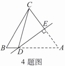 4. 如图,点$D$,$E分别在AB$,$AC$上,将$\triangle ABC沿直线DE$折叠,使点$A与点C$重合. 若$AB = 7$,$BC = 6$,则$\triangle BCD$的周长为______.