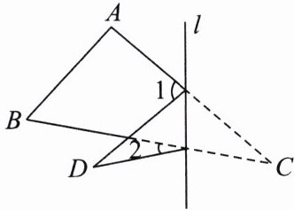 例2 如图,在△ABC中,∠C = 36°,将△ABC沿着直线l折叠,使点C落在点D的位置,则∠1 - ∠2的度数是( )