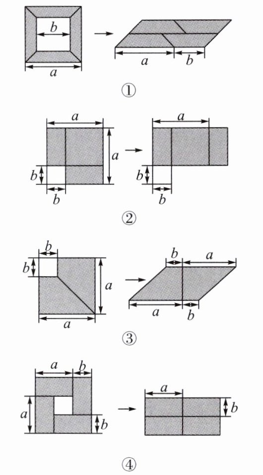 12. 某数学兴趣小组用“等面积法”分别构造了以下四种图形验证“平方差公式”: