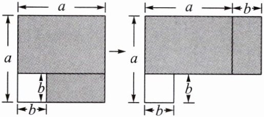 7. 如图,从边长为 $a$ 的大正方形中剪掉一个边长为 $b$ 的小正方形,再将剩下的阴影部分剪开,拼成右边的长方形. 根据图形的变化过程可以验证的等式是( )
