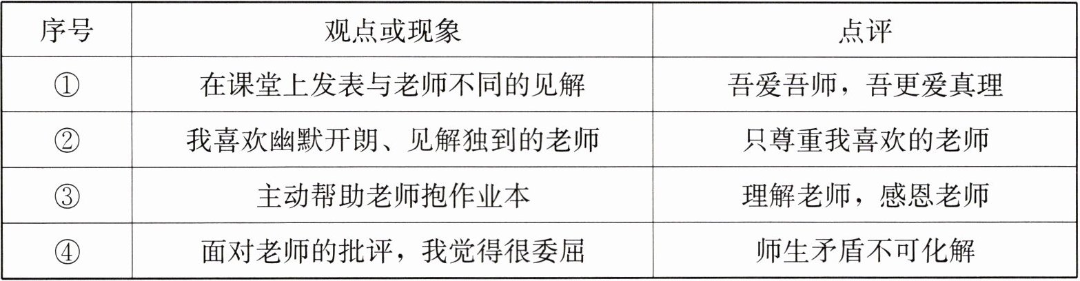 |①|在课堂上发表与老师不同的见解|吾爱吾师,吾更爱真理|