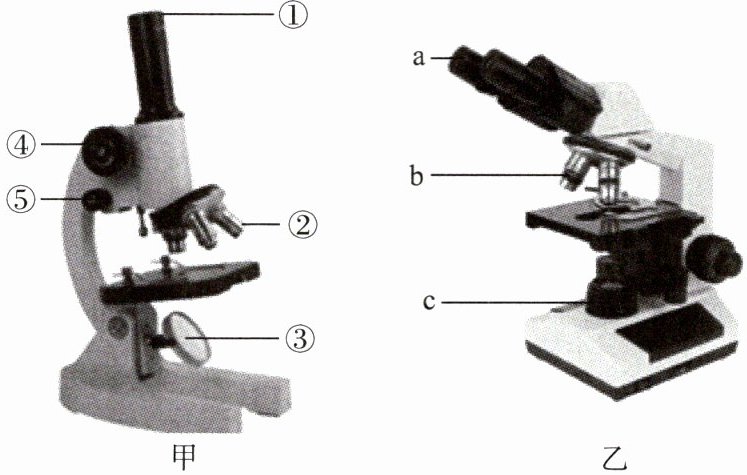(2)图甲中,结构①的名称是______(填“目镜”或“物镜”);图乙中,结构a的名称是______;图乙中结构b和图甲中______(填序号)的结构和作用相同。