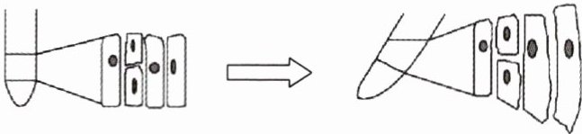 例 1 如图为植物的根发生了弯曲生长后,弯曲前后细胞的形态图。由此可推测,造成根弯曲的原因最可能影响了( )。