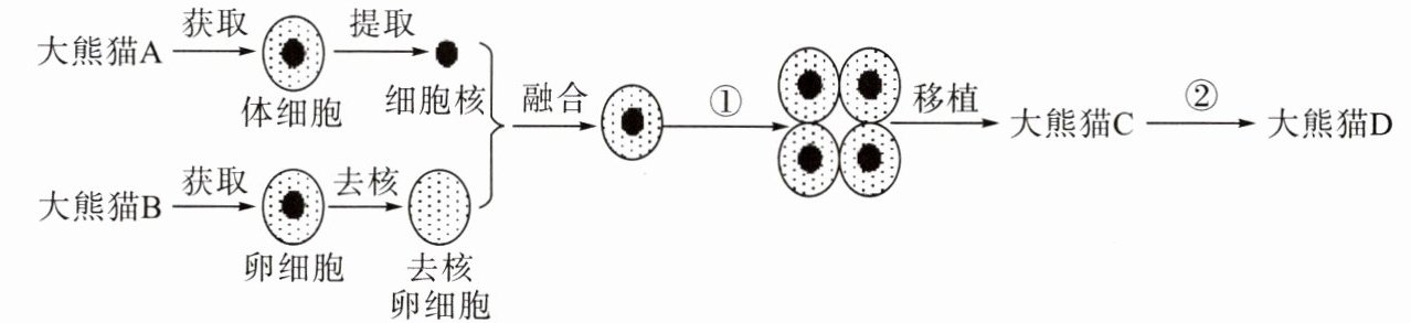 10. 科学家尝试利用克隆的方法繁殖大熊猫。如图是克隆过程示意图,请回答问题: