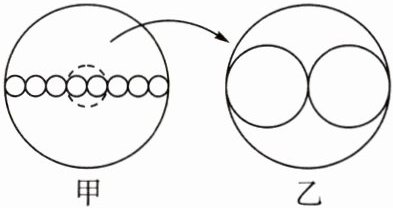 5. 如图甲、乙分别表示更换物镜前后显微镜视野中紧密排列的一行细胞。更换物镜后( )。