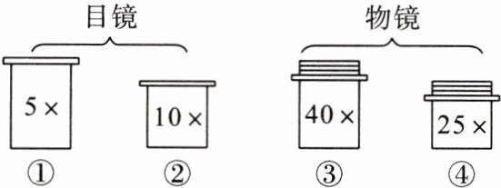 3. 如图是一台显微镜的4个镜头,若要在视野中看到较多的细胞,应该选用的目镜和物镜的组合是( )。