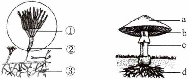 4. 如图是青霉和蘑菇的结构示意图,下列叙述错误的是( )。