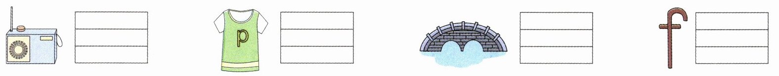 解析:这道题考查借助图片认识拼音的能力。根据图片内容写出藏在其中的声母,书写时注意各个声母在四线格中的位置:b、f占四线格的上、中两格,p占四线格的中、下两格,m占四线格的中格。