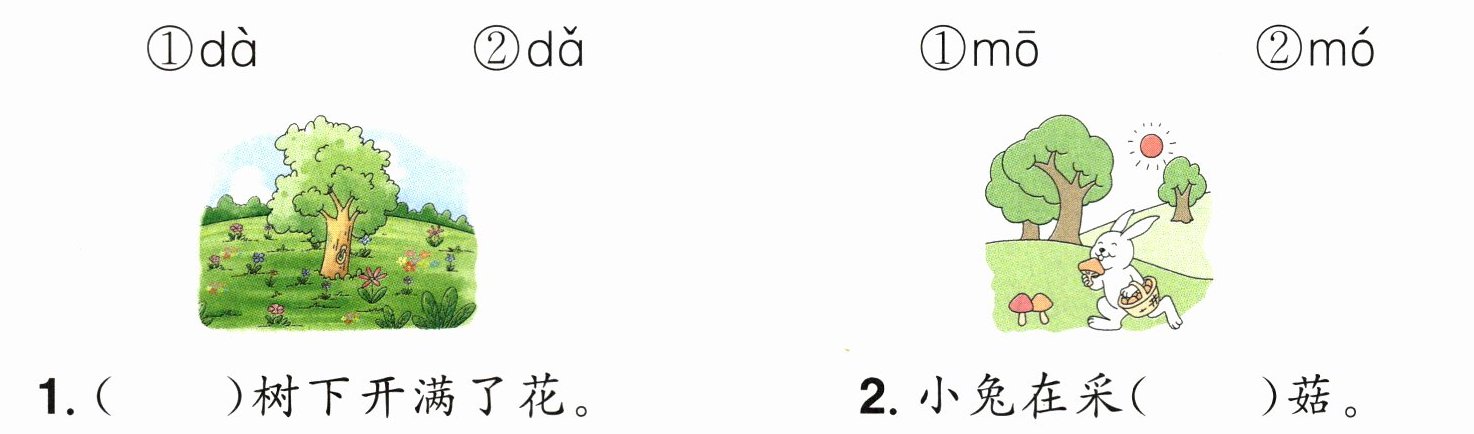 阳 阳 正 在 辨 读 声 调 。 请 你 根