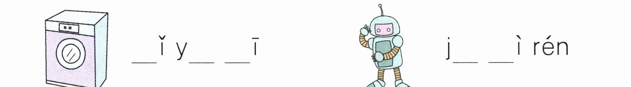 解析:这道题考查借助图片拼读音节的能力。第一幅图是一个洗衣机,第二幅图是一个机器人,根据图片补充音节。