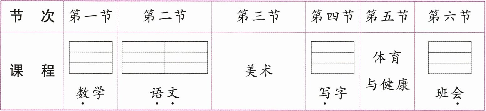 |课 程|数学|语文|美术|写字|体育与健康|班会|