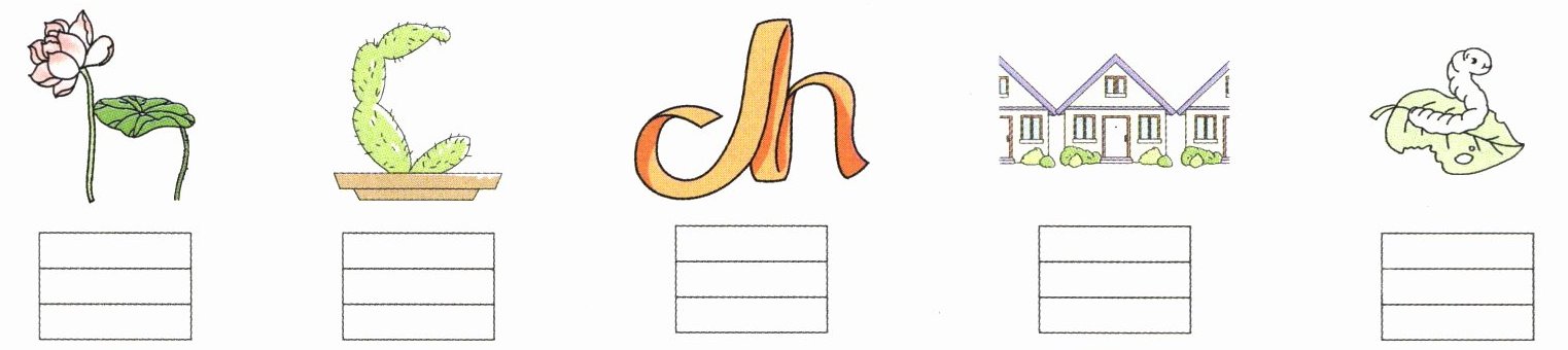h c ch w s 解析:这道题考查借助图片写声母的能力。观察图片,写出图中的声母,书写时注意声母在四线格中所占的位置。