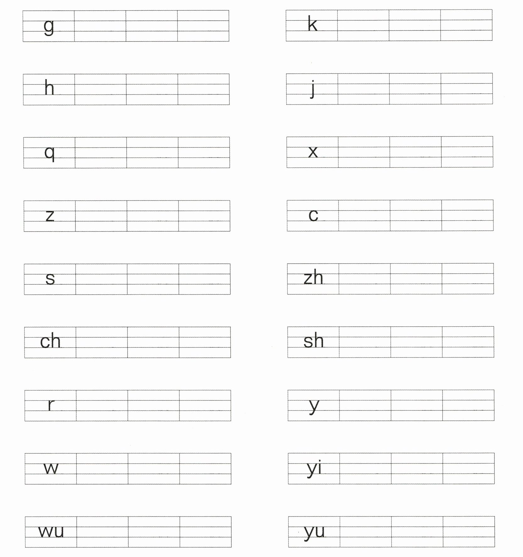 ggg kkk hhh jjj qqq xxx zzz ccc sss zh zh zh ch ch ch sh sh sh rrr yyy www yi yi yi wu wu wu yu yu yu