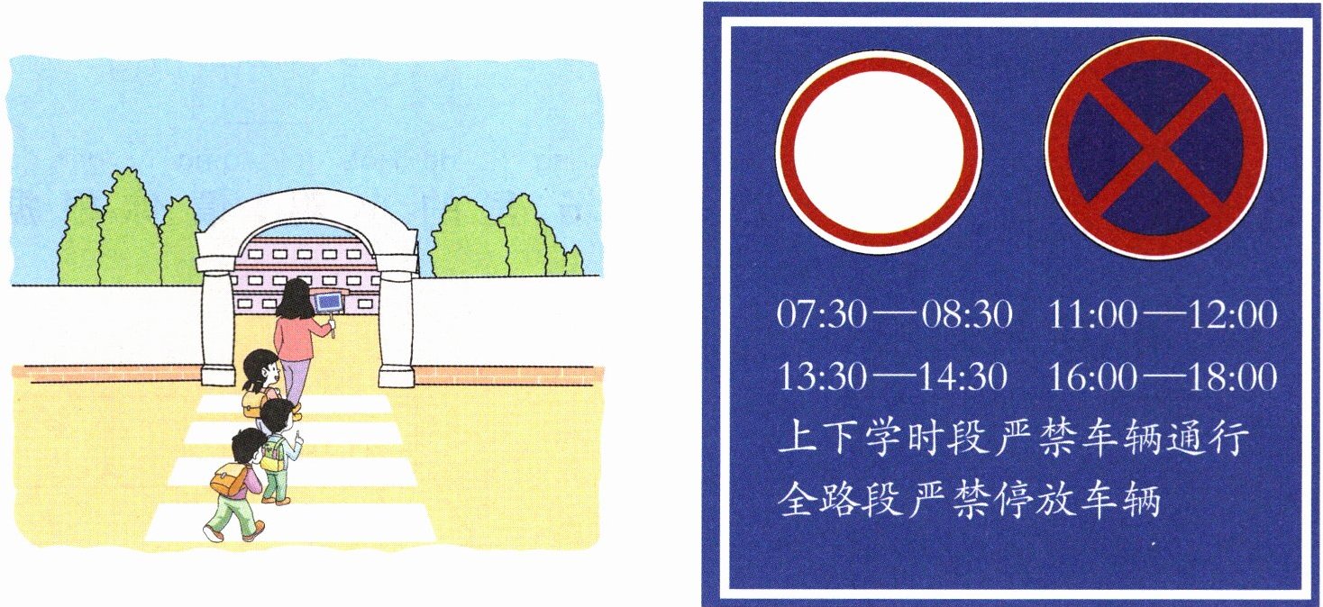 (1)题正确。早上8点在上学时段内,由“上下学时段严禁车辆通行”可知,阳阳的爸爸不能开车把阳阳送到学校门口,第