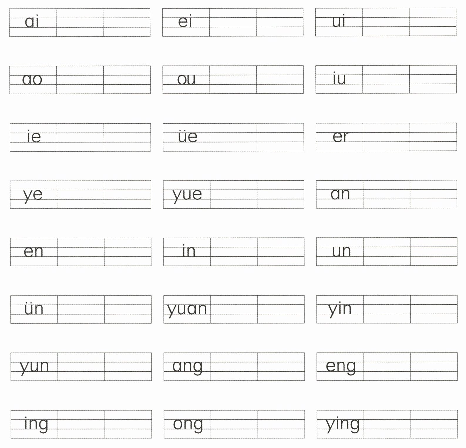 ai ai ei ei ui ui ao ao ou ou iu iu ie ie üe üe er er ye ye yue yue an an en en in in un un ün ün yuan yuan yin yin yun yun ang ang eng eng ing ing ong ong ying ying