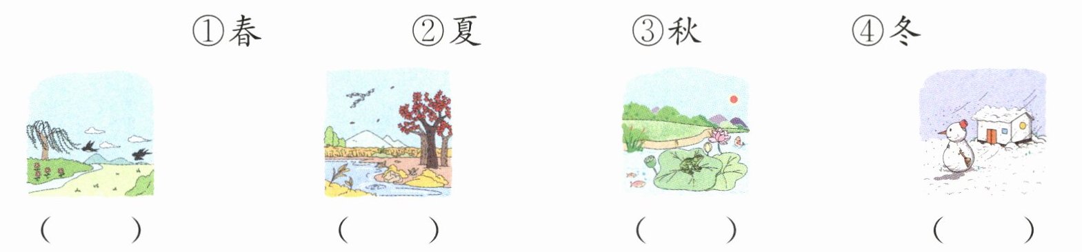二(烟台真题)【四季故事】有几位选手讲述了四季的故事,下面是故事的相关图片,先选出它们分别对应的季节(填序号),再写出自己喜欢的季节并说明理由。