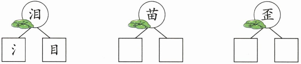 解析:这道题考查汉字的部件。结合儿歌内容可知,“泪”可以分成“氵”和“目”,“苗”可以分成“艹”和“田”,“歪”可以分成“不”和“正”。