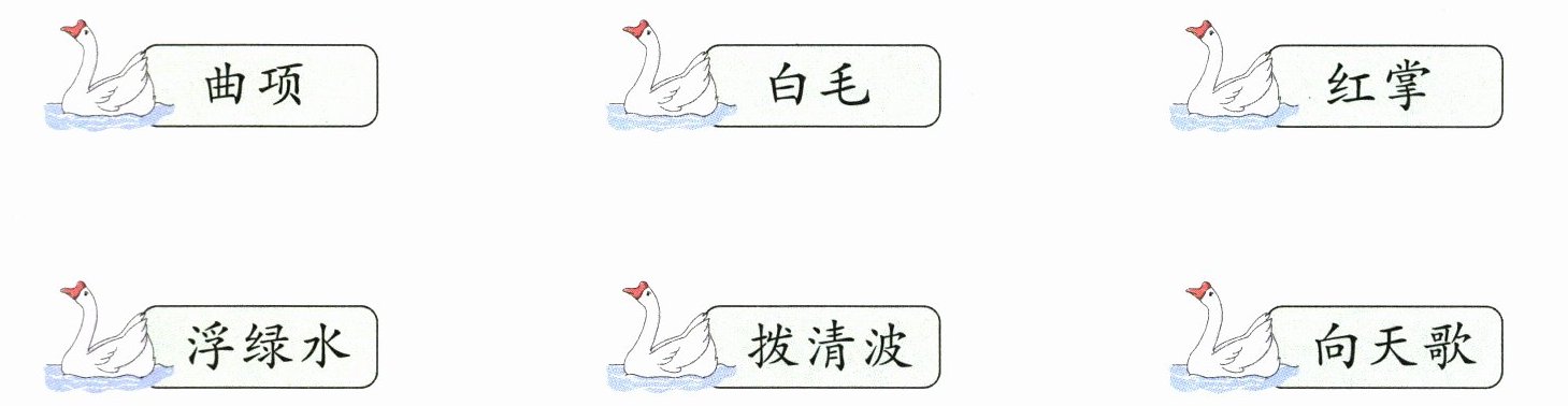 2. 和汉字宝宝一起打着节拍把《咏鹅》这首诗唱出来吧!