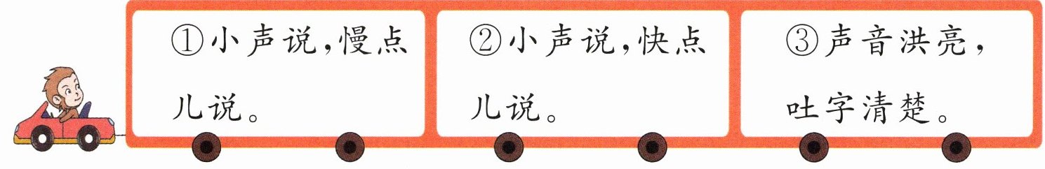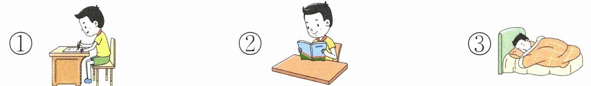 1.③ 解析:这道题考查对口语交际所学内容的理解运用。联系做游戏的场景可知,在对别人发指令的时候一定要声音洪亮,吐字清楚,让别人能听得见。2.① 解析:这道题考查对语文学习基本内容的了解。①中的小朋友在写字,②中的小朋友在读书,③中的小朋友在睡觉。阳阳听到的是写字的口令,所以选①。