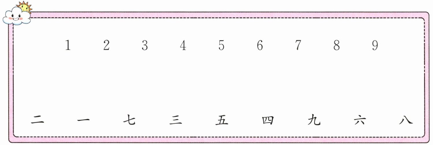 解析:这道题考查结合数字识字。第一行给出的是1—9的数字,这些数字我们并不陌生,按照题目的要求,依次找出与之对应的汉字,用线连起来即可。