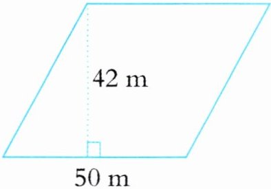 (1)解:$S = 底× 高$,果园为平行四边形,底为$50m$,高为$42m$,所以果园面积为: