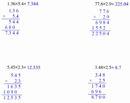 $1.36×5.4= $ $\quad$ $77.6×2.9= $