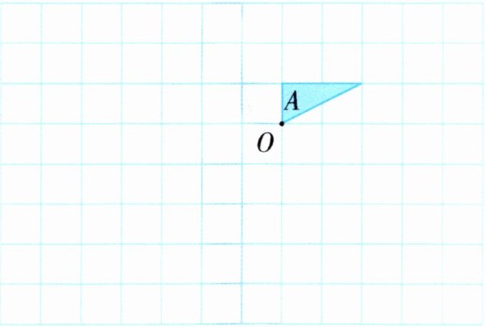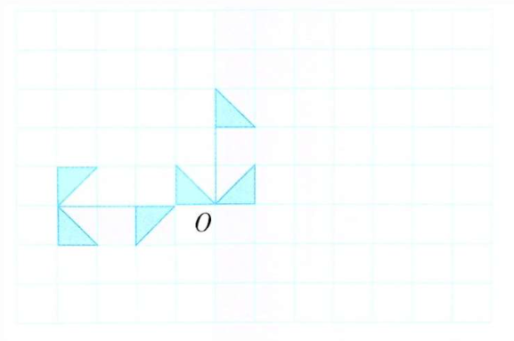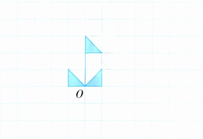 6. 画一画,将下面图形绕点 O 沿顺时针方向旋转 $ 90^{\circ} $,再向左平移 4 格。
