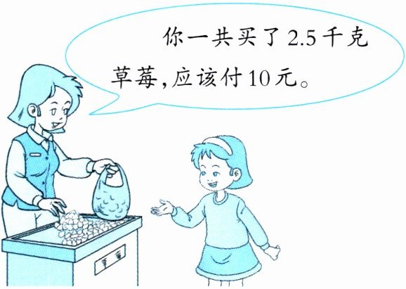 1. 已知购买草莓的重量为2.5千克,总价为10元。