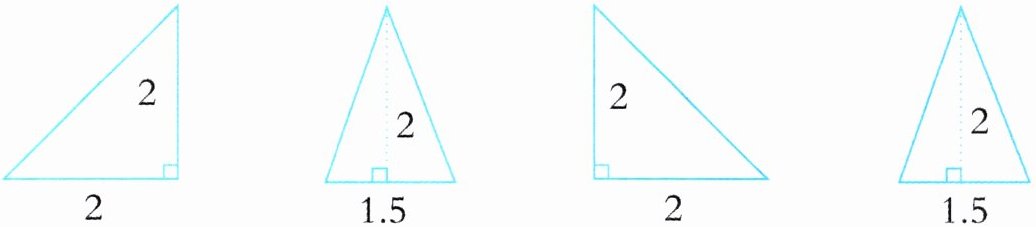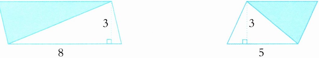 1. 下面哪两个三角形的面积和与上面的图形面积一样大?用线连一连。(单位:cm)