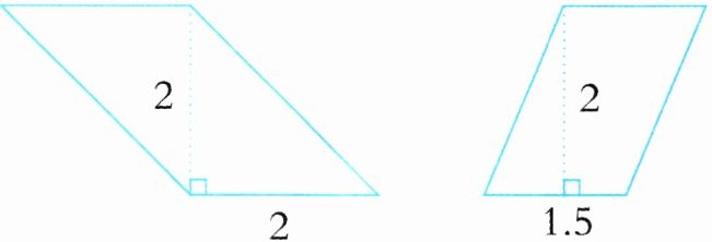 2. 先算出下面每个平行四边形的面积,再算出每个图中涂色部分的面积。(单位:dm)