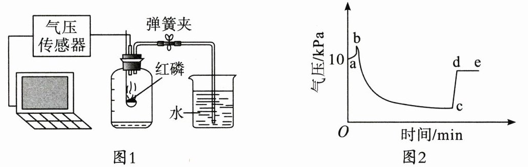 16. 空气是由多种成分组成的混合物,用图1所示装置探究空气中氧气的含量,测得实验过程中气压随时间的变化关系如图2所示。