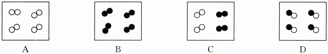 C 解析 A中只含有一种分子,属于纯净物,不符合题意;B中只含有一种分子,属于纯净物,不符合题意;C中含有两种分子,表示由两种物质组成的混合物,符合题意;D中只含有一种分子,属于纯净物,不符合题意。