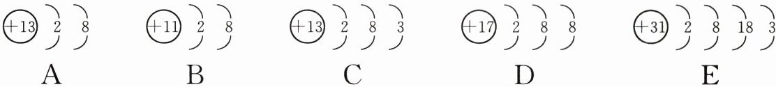 (4)原子中,核电荷数等于核外电子数,图示五种粒子中,C、E两种粒子满足此条件,所以C、E为原子结构;阳离子中,核电荷数>核外电子数,图示五种粒子中,A、B两种粒子满足此条件,所以A、B为阳离子结构;阴离子中,核电荷数<核外电子数,图示五种粒子中,D粒子满足此条件,所以D为阴离子结构。