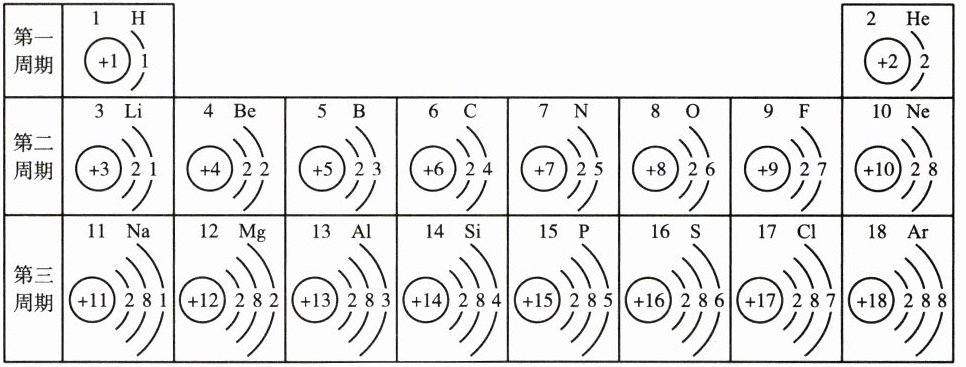 (填“得到”或“失去”)电子。(4)11~18 号元素在表中处于同一周期的原因是它们原子结构中的