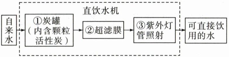 3. 公园、车站等公共场所内设有许多直饮水机,其中水处理的过程如图所示。步骤③对应的作用是(