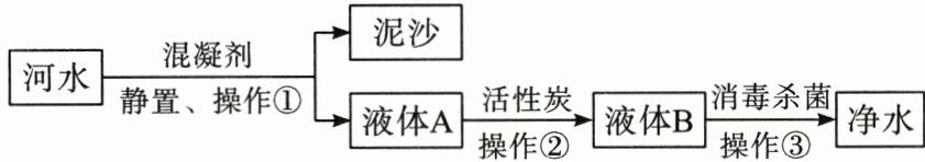 (1)操作①是分离难溶性的泥沙与液体的方法,即过滤。