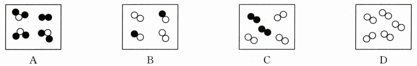 D 解析 图A表示由一种单质和一种化合物组成的混合物,错误;图B表示由一种单质和一种化合物组成的混合物,错误;图C表示由两种单质组成的混合物,错误;图D表示单质,正确。