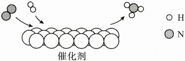 B 解析 常温下氮气的化学性质稳定,不易和其他物质反应,A项错误;从微观示意图可知,该反应的化学方程式为N₂+3H₂$\frac{\underline{催化剂}}{}$2NH₃,所以N₂和H₂按个数比1:3进行该反应,B项正确;