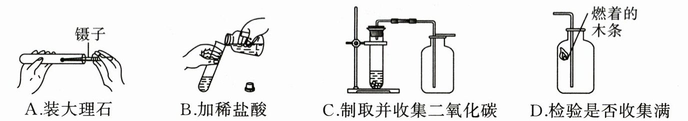 4. 实验操作考试中,小红同学抽到“实验室制取二氧化碳”,以下是她的部分实验操作,其中有错误的一项是(