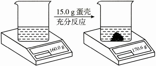 (2)解:由质量守恒定律可知,产生二氧化碳气体的质量为160.0 g+15.0 g-170.6 g=4.4 g。设参加反应的CaCO₃的质量为x,CaCO₃+2HCl=CaCl₂+H₂O+CO₂↑,100/44=x/4.4g,x=10.0g,CaCO₃的质量分数为(10.0g/15.0g)×100%≈66.7%。答:反应生成CO₂的质量为4.4 g,CaCO₃的质量分数为66.7%。解析