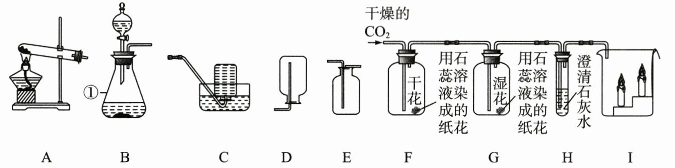 (4)二氧化碳不能使紫色石蕊干花变红,但二氧化碳与水反应生成的碳酸可以使石蕊溶液变红,得出二氧化碳能与水发生化学反应的结论,证据是:F处纸花不变色,G处纸花变红。