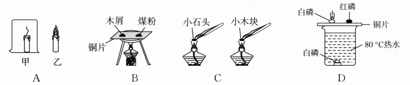 3. 下列探究燃烧条件的实验中,只能得出燃烧需要氧气的结论是(