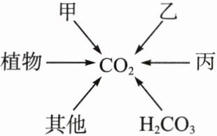 C 解析 甲是一种燃料,具有可燃性,所以甲可能是一氧化碳、甲烷或酒精等物质,A项错误;乙是一种气体,可以转化为二氧化碳,可能是一氧化碳、氧气或甲烷等气体,B项错误;若丙为碳酸钙,二氧化碳和氢氧化钙反应生成碳酸钙,碳酸钙高温分解可以转化为二氧化碳,两者可以相互转化,C项正确;植物通过光合作用释放氧气,通过呼吸作用释放二氧化碳,D项错误。