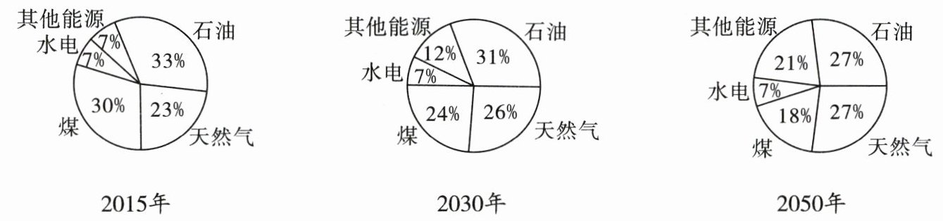 (1) 比较2015、2030、2050年能源结构,化石能源占比日益减少的是