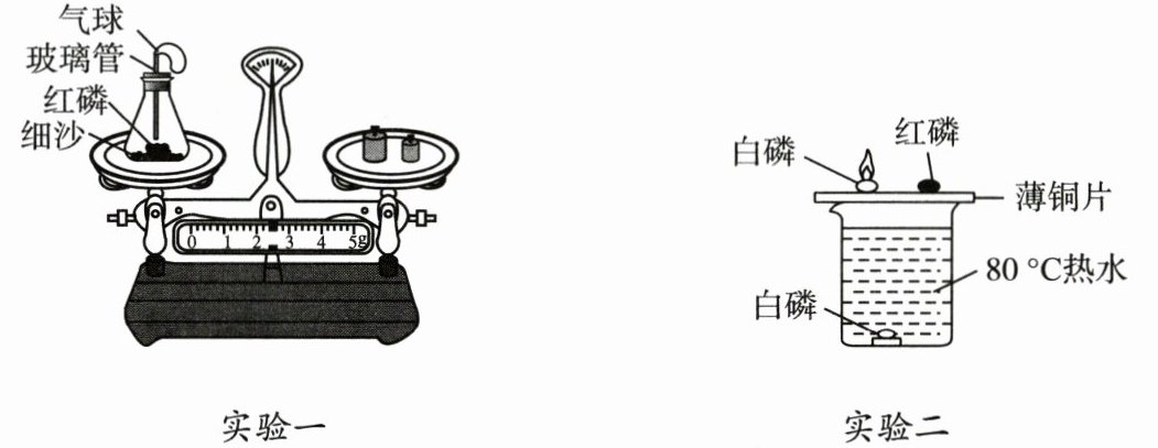 质量守恒定律。(2) 实验二:对比铜片上的白磷与红磷的燃烧情况,说明燃烧的条件之一是